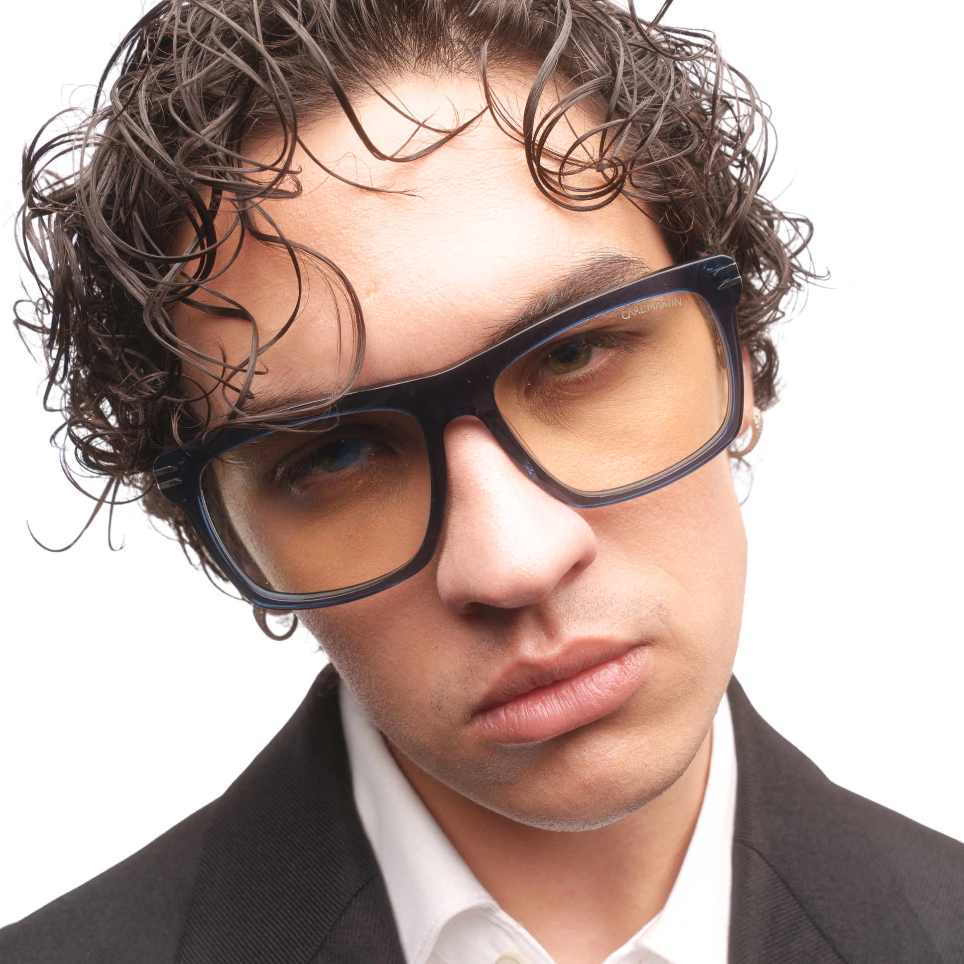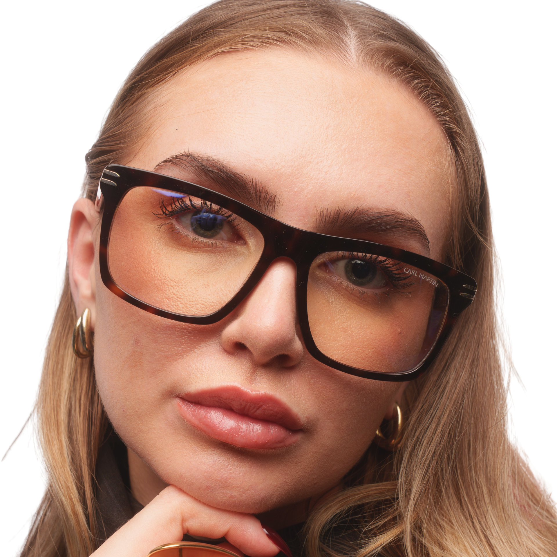 Montura de acetato multicapa, con acabado pulido a mano. En el frontal, destacan inserciones metálicas doradas que refuerzan la estructura. Las bisagras con recubrimiento garantizan una apertura fluida y una durabilidad superior.