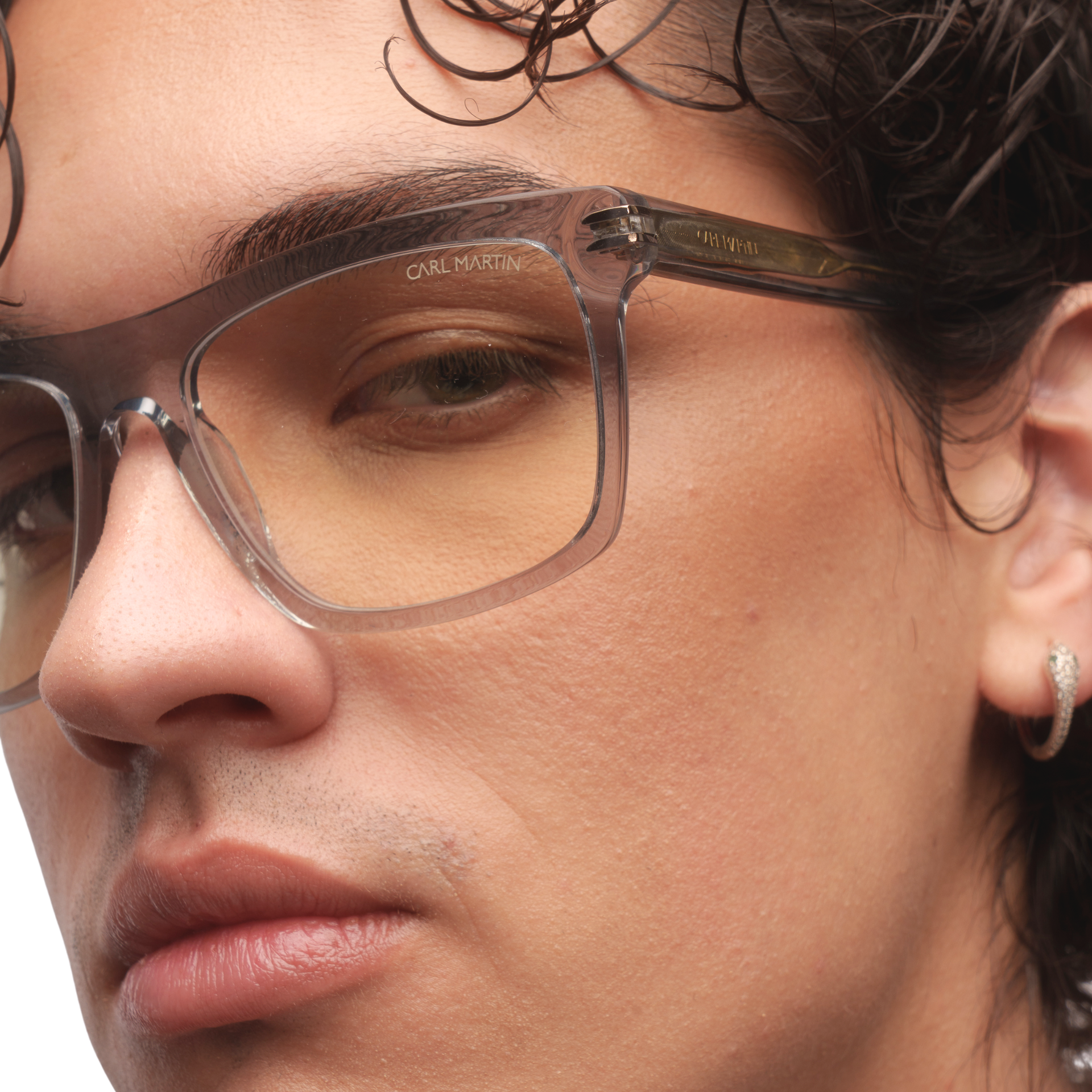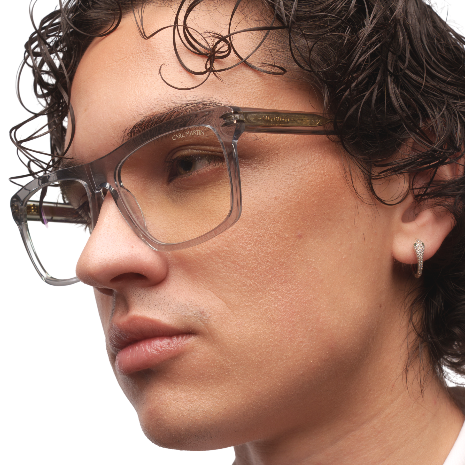 Montura de acetato multicapa, con acabado pulido a mano. En el frontal, destacan inserciones metálicas doradas que refuerzan la estructura. Las bisagras con recubrimiento garantizan una apertura fluida y una durabilidad superior.