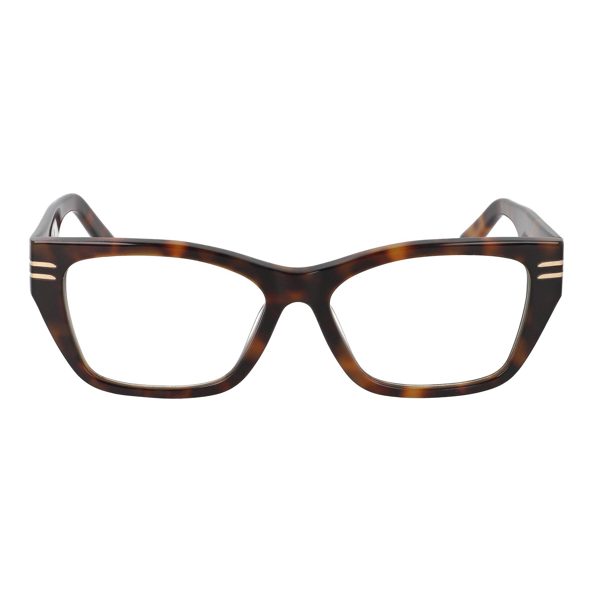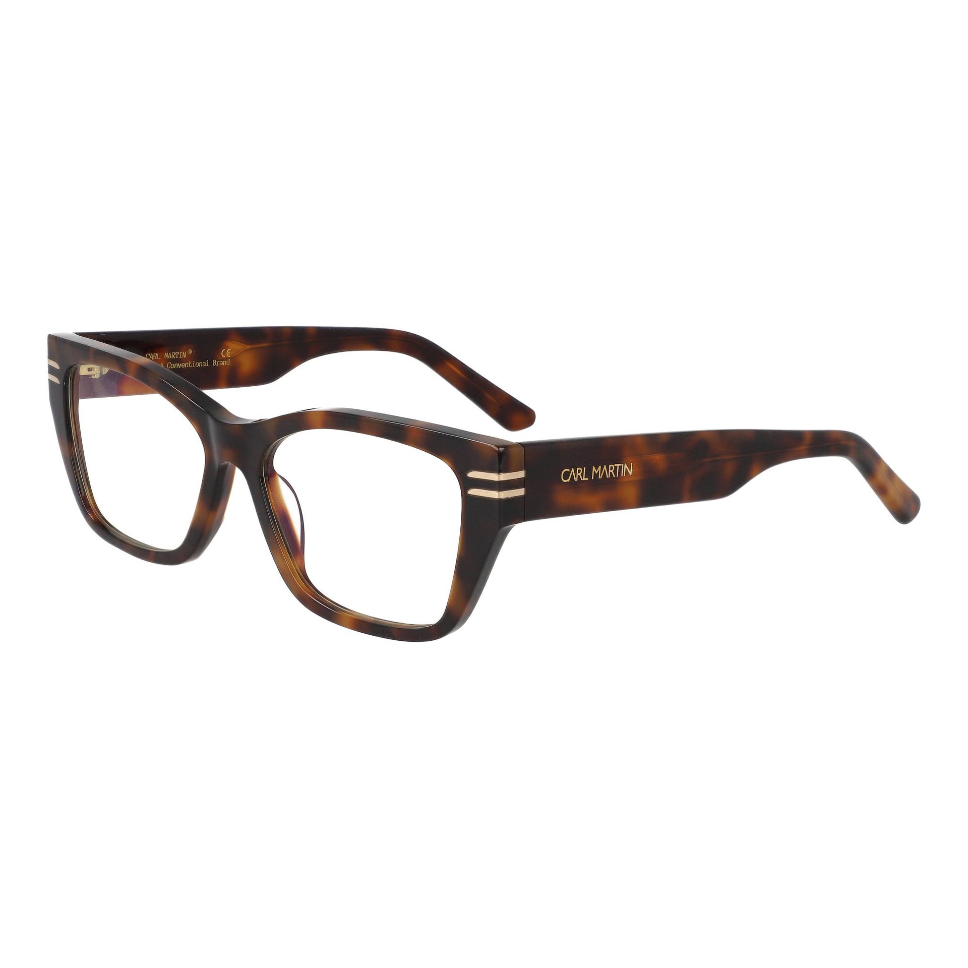 Montura rectangular de acetato multicapa, con un acabado pulido a mano que aporta profundidad visual. En el frontal, destacan inserciones metálicas doradas que refuerzan la estructura. Las bisagras con recubrimiento dorado garantizan una apertura fluida y una durabilidad superior.