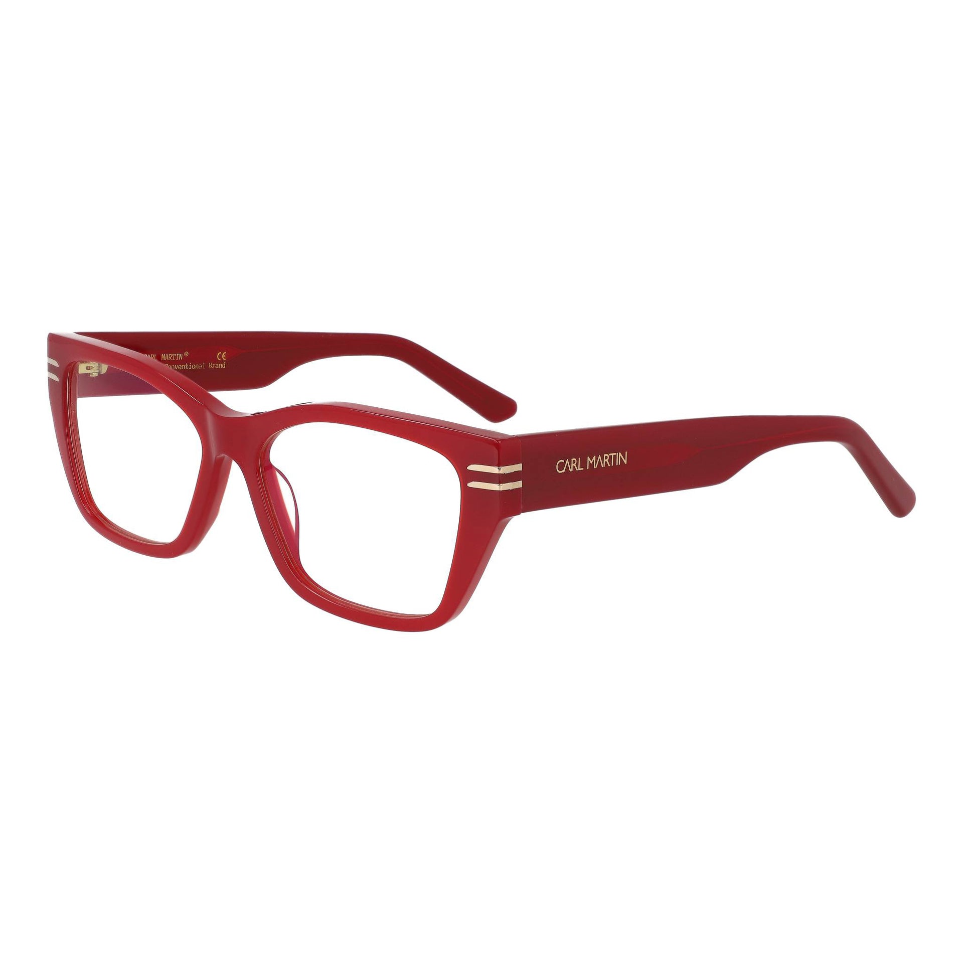 Montura rectangular de acetato multicapa, con un acabado pulido a mano que aporta profundidad visual. En el frontal, destacan inserciones metálicas doradas que refuerzan la estructura. Las bisagras con recubrimiento dorado garantizan una apertura fluida y una durabilidad superior.